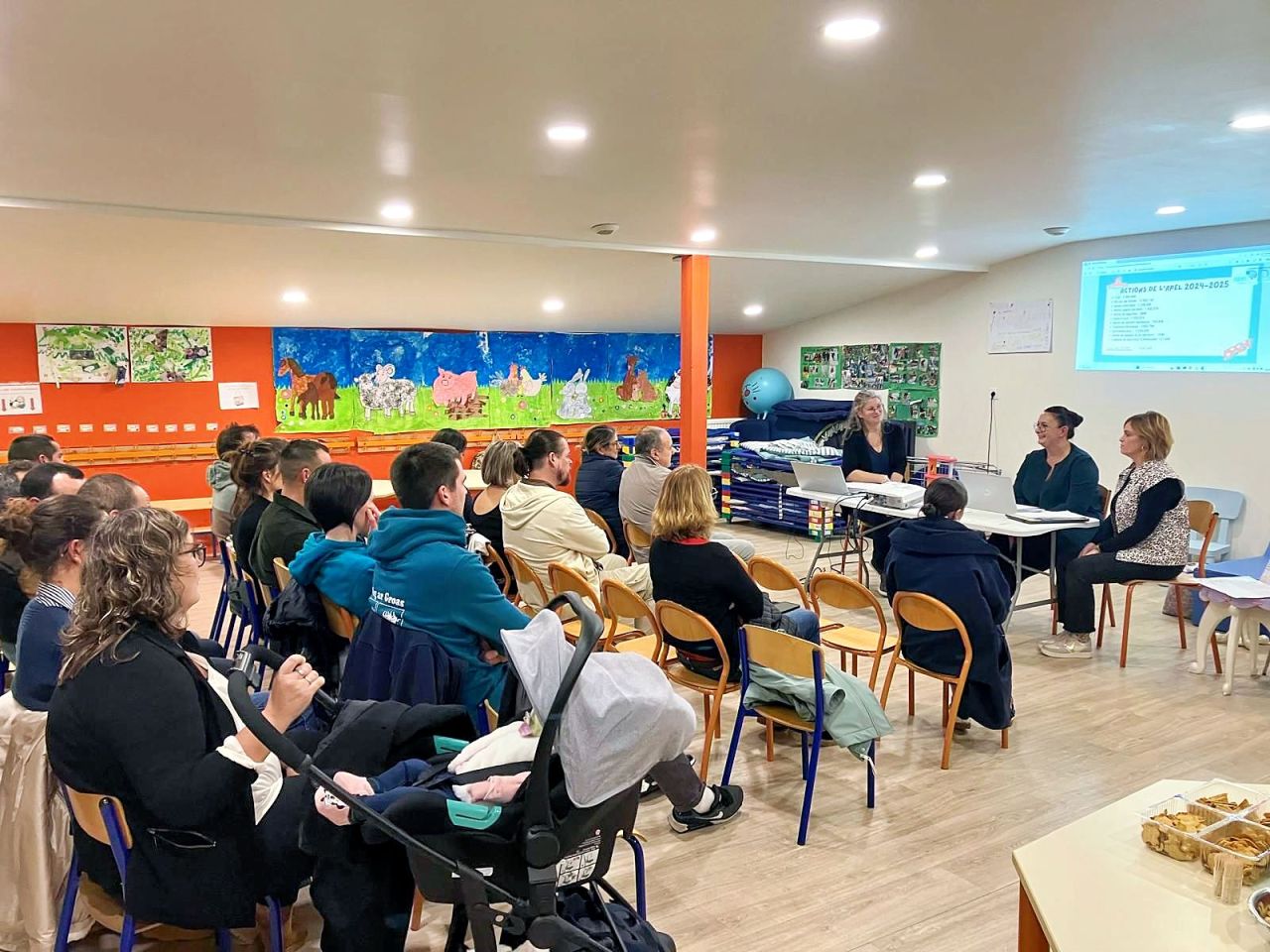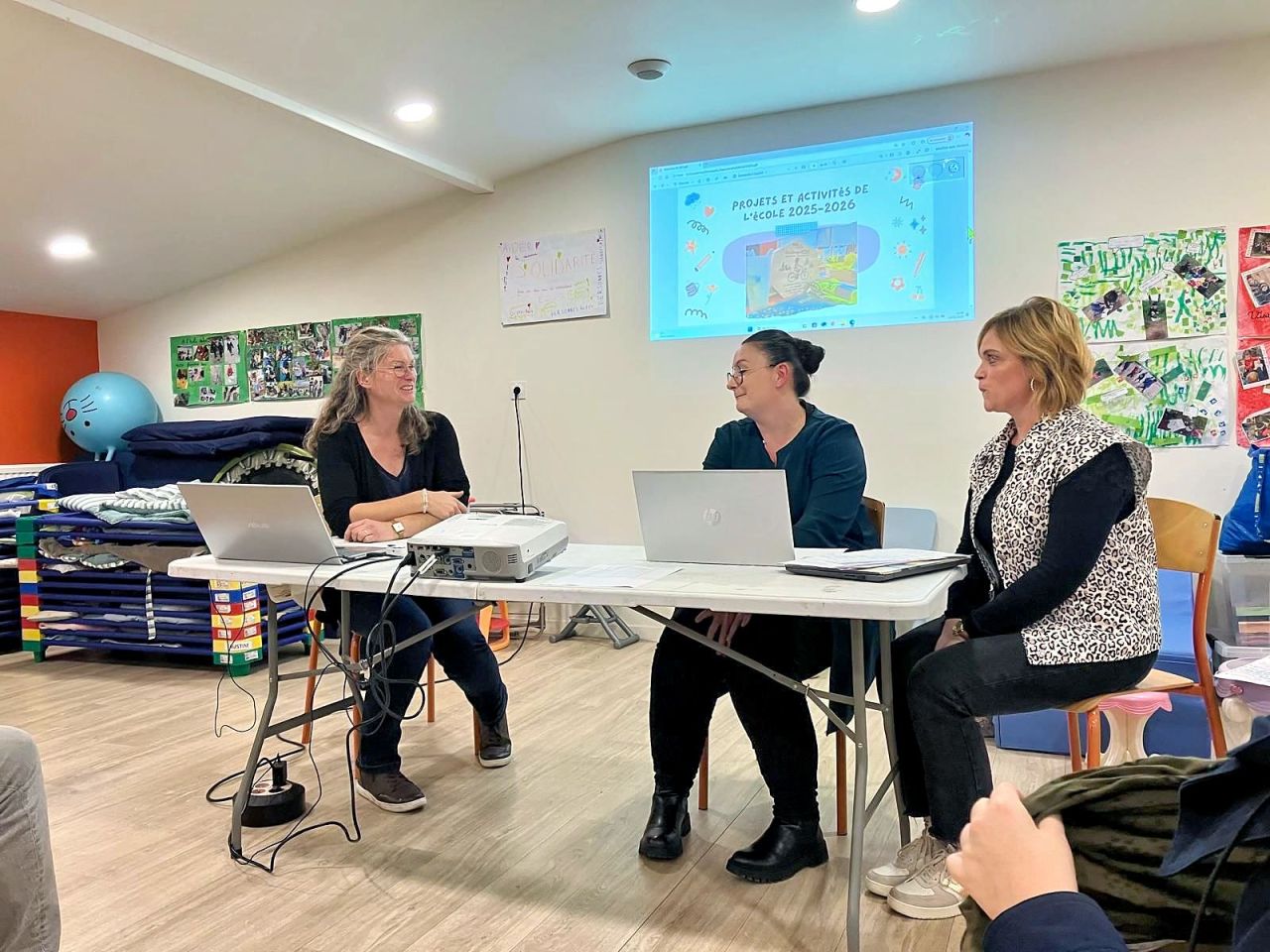 Les membres de l’APEL et Mme Le Duc, cheffe d'établissement, ont présenté les réalisations de l’année écoulée : actions menées pour les élèves, temps forts festifs, soutien aux projets éducatifs, et initiatives au service des familles.