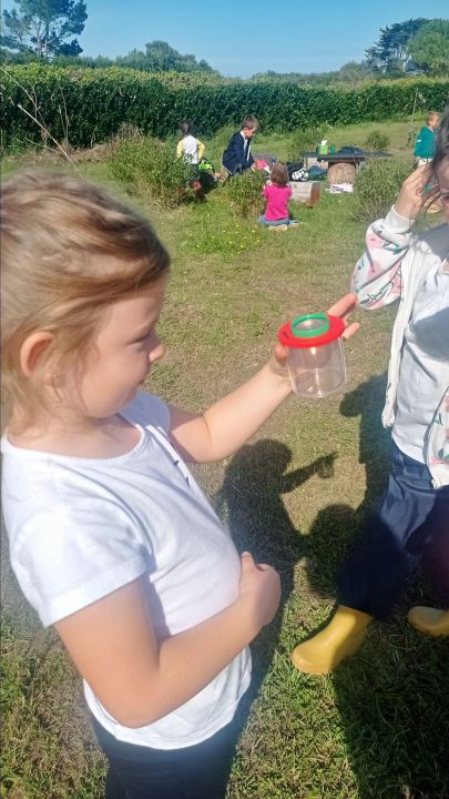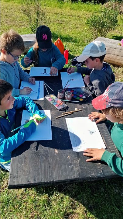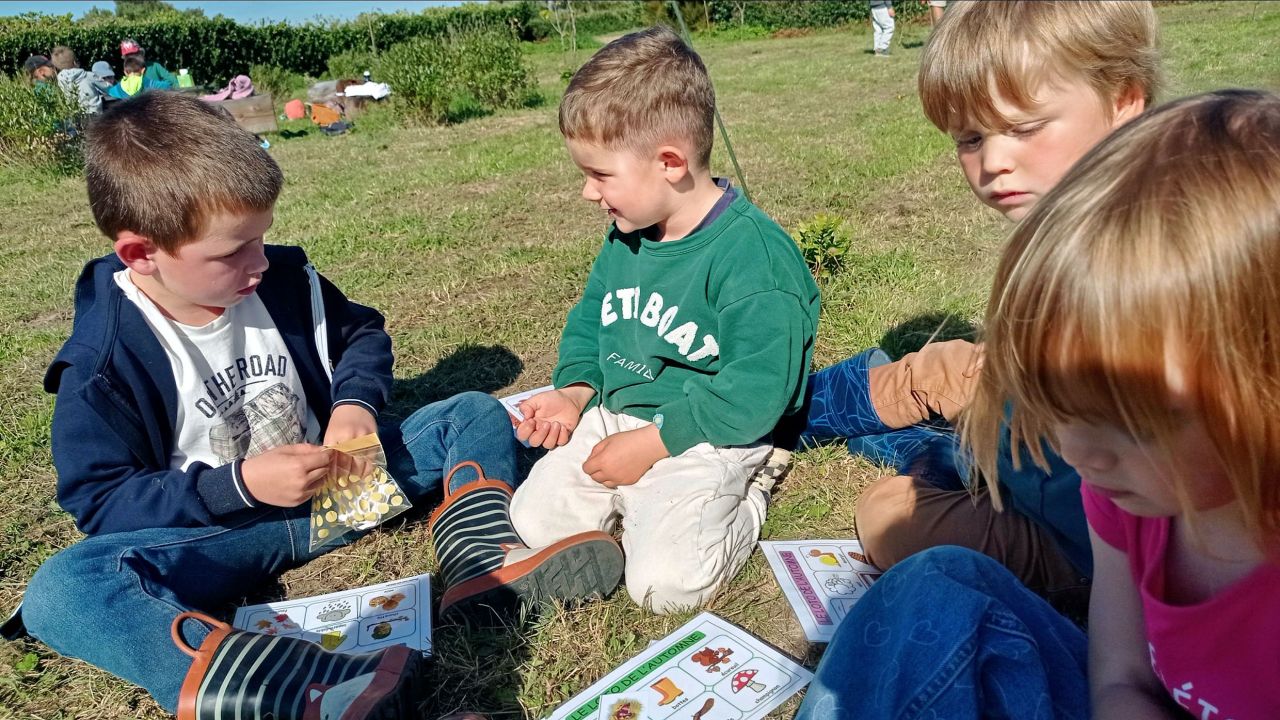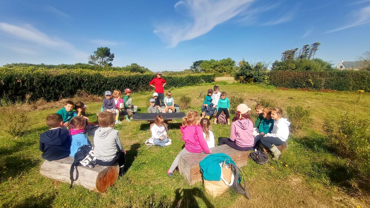 Mardi, les élèves de MS-CP-CE1 ont fait école dehors.