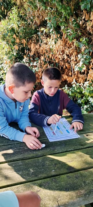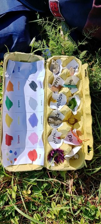 🎨 En chemin, chacun a collecté des éléments naturels correspondant à une couleur donnée en anglais — un vrai défi d’observation ! 🍂💚💛